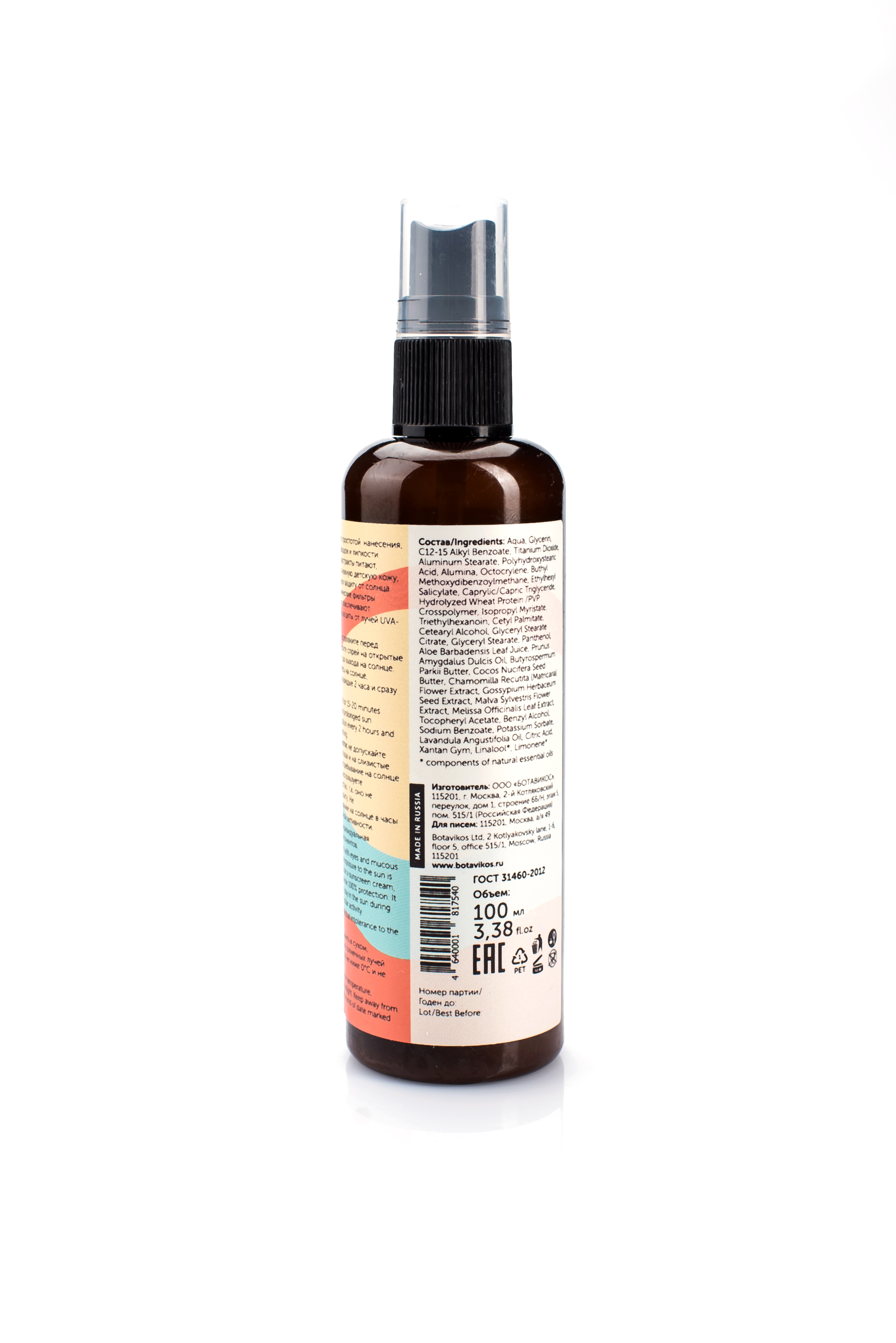 Наносите солнцезащитный спрей до выхода на солнца. Обновляйте его в течение пары часов или после каждого контакта с водой. -