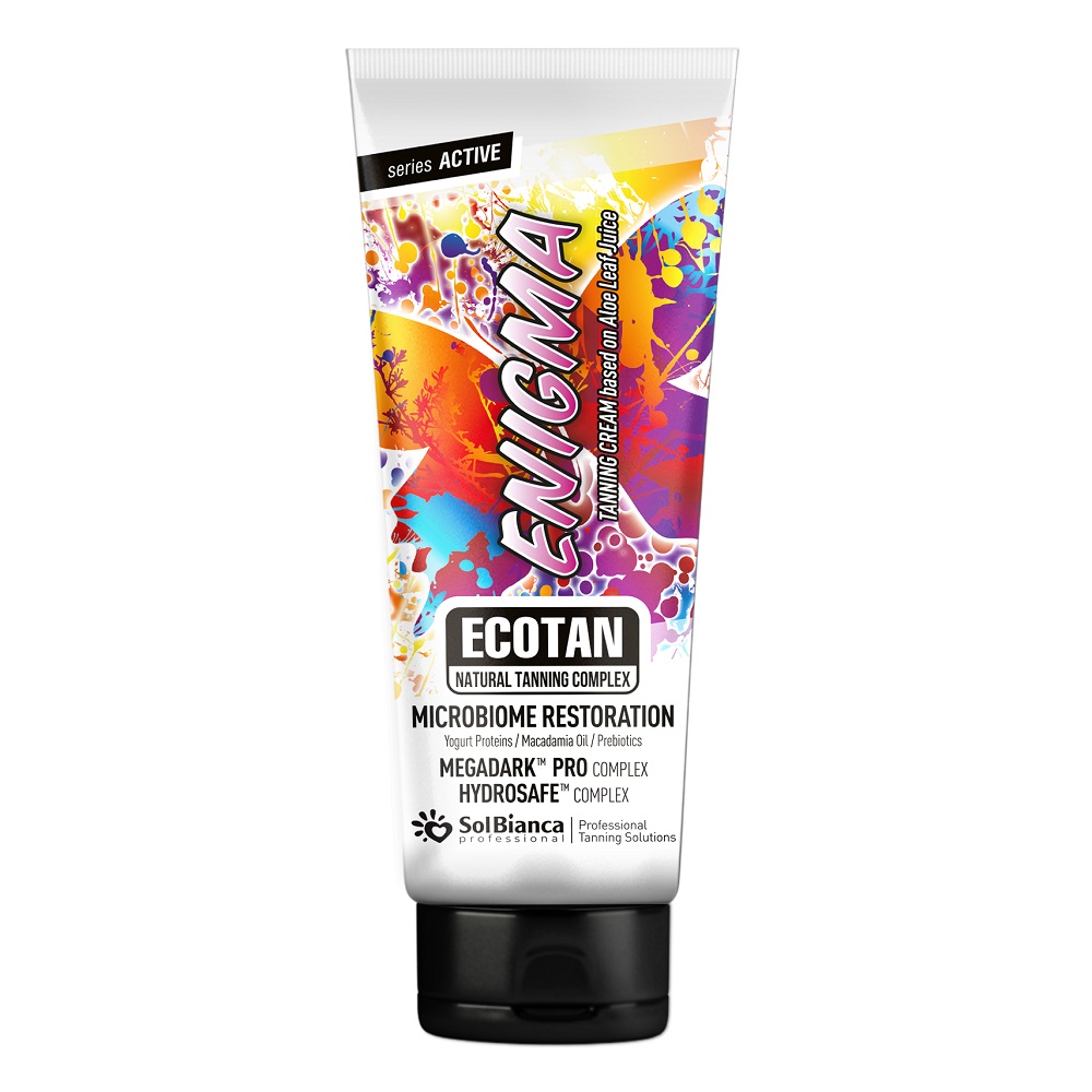 Крем для загара в солярии “Enigma” с протеинами йогурта, маслом макадамии и пребиотиками.