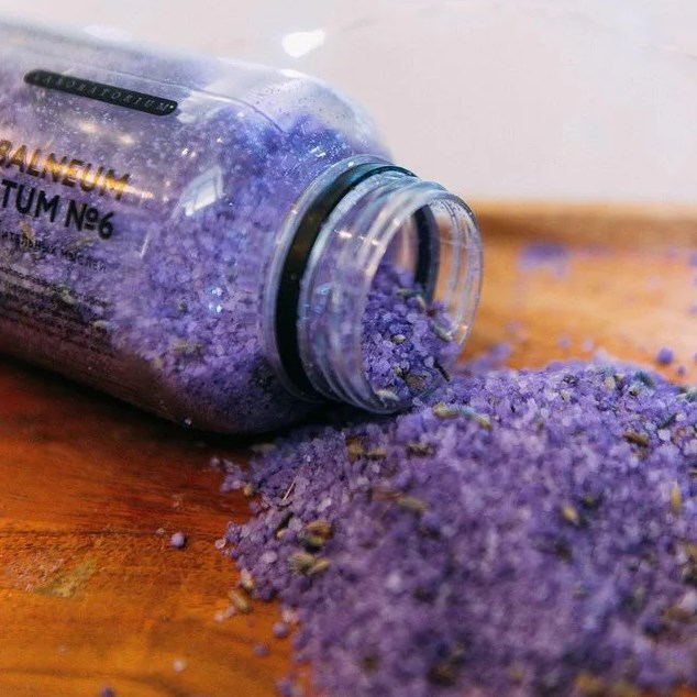 Этот питательный микс содержит масло лаванды, которое смягчает сухую кожу и помогает ей удерживать влагу. Миндальное масло питает кожу, масло кокоса успокаивает ее, а касторка заживляет ранки и трещинки. Сода и растительные сливки смягчают воду, а морская соль наполняет ее необходимыми минералами.