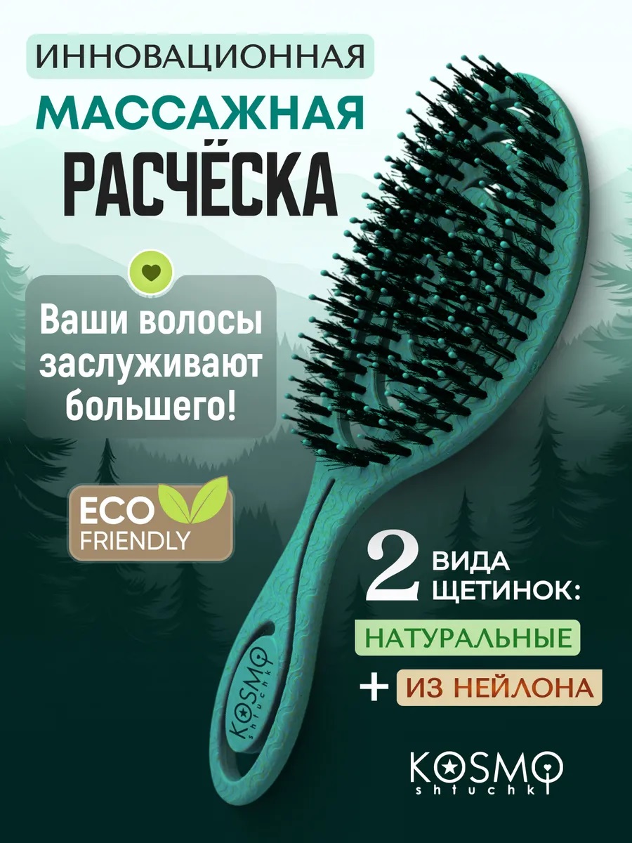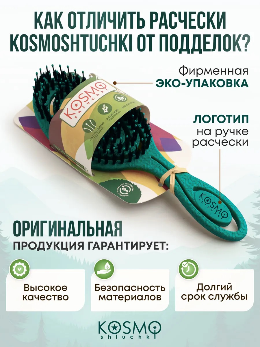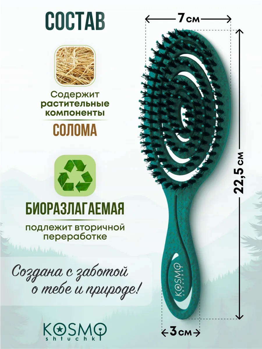 Расческа массажная для волос KosmoShtuchki создана с любовью к вам и заботой об окружающей среде и идеальна в подарок — её основа выполнена из экологичных растительных волокон. Такой материал не только безопасен для волос и кожи головы, но и соответствует современным трендам устойчивого потребления.