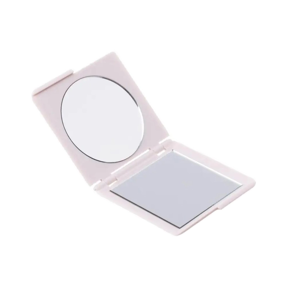 Карманное зеркало выполнено из гладкого и приятного на ощупь пластика. Имеет раскладной механизм и удобную защёлку.