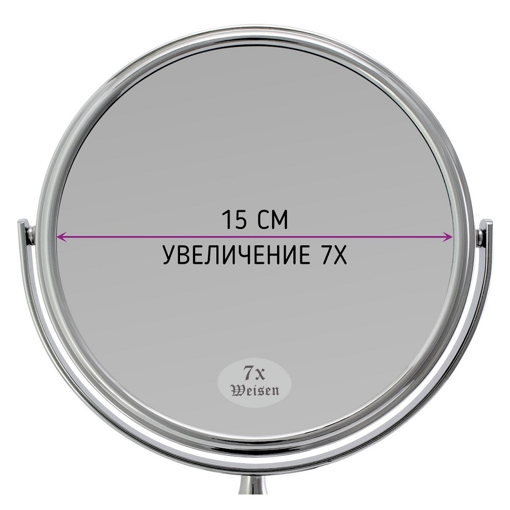 Зеркало Weisen BIC-1066A-1 Silver настольное двухстороннее с 7-и кратным увеличением.