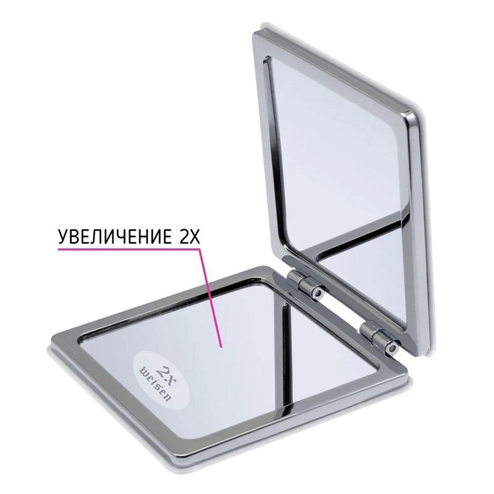 Одна сторона двойного зеркальца имеет двукратное увеличение, вторая сторона - обычное зеркало.