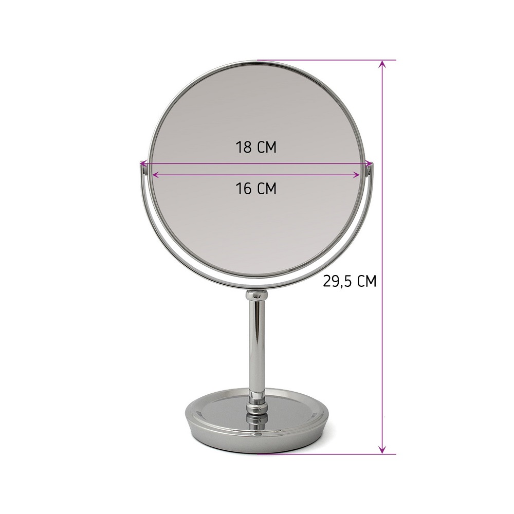 Страна-изготовитель Китай Особенности Двухстороннее Материал (состав) Стекло, металл Диаметр 17 см Увеличение 5-ми кратное Высота 29 см -